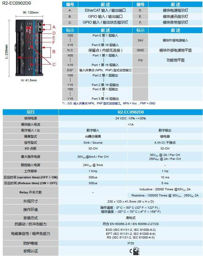 可單獨連結(jié) EtherCAT 系統(tǒng)使用,進行數(shù)字輸入信號及數(shù)字輸出信號的控制。