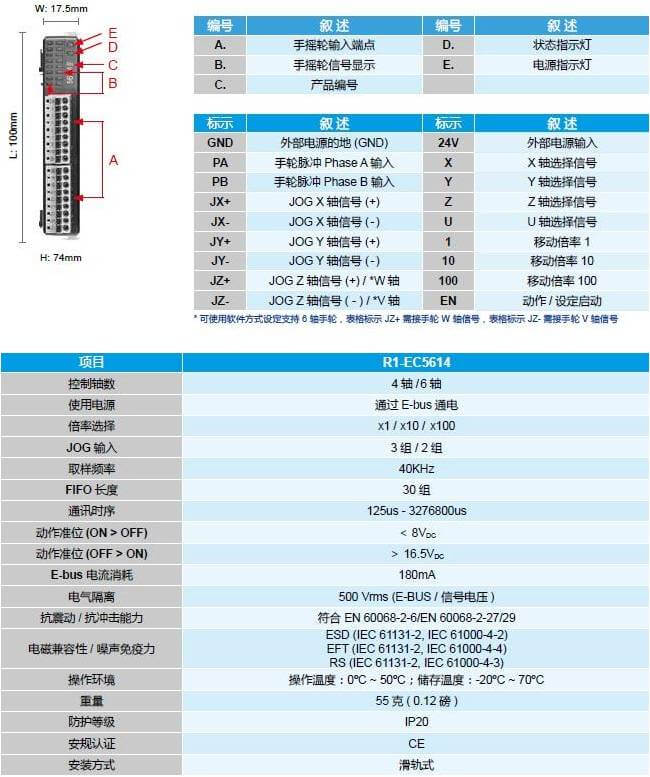 EtherCAT 手輪擴展模塊 – R1-EC5614D0